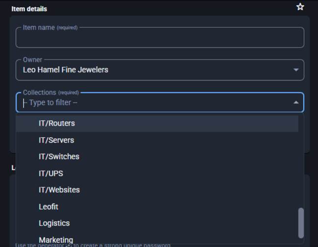 Assign the password to the appropriate Collections/Departments (e.g., Sales, Marketing, IT, etc.) to ensure proper access for authorized personnel.