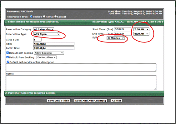 STEP 2: MODIFY THE SECTION “1. Select desired reservation type and times.” AS FOLLOWS: